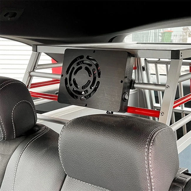 Das innovative Belüftungssystem der Firma Dogsworld für Hundeboxen, sorgt für einen optimalen Luftaustausch in der Hunde-Transportbox und verhindert somit einen Wärmestau. Der Lüfter kann bei Bedarf einfach mittels dem eingebauten Kippschalter ein- und ausgeschaltet werden.