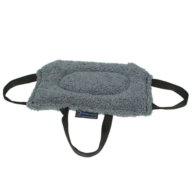 Besonders weiches und flauschiges Sporthund Plüschbestätigungskissen 28 x 14 x 3 cm flach und leicht aufgepolstert mit Handgriffen.