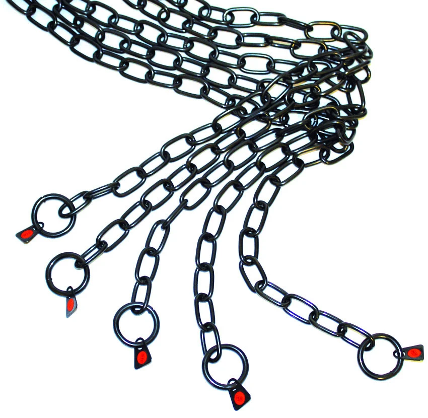 Bei den langgliedrigen Ketten hast du die Wahl zwischen einer Drahtstärke mit einem Durchmesser von 3 mm oder 4 mm. Die Medium-Ketten haben kürzere Glieder in einer Drahtstärke von 3 mm.